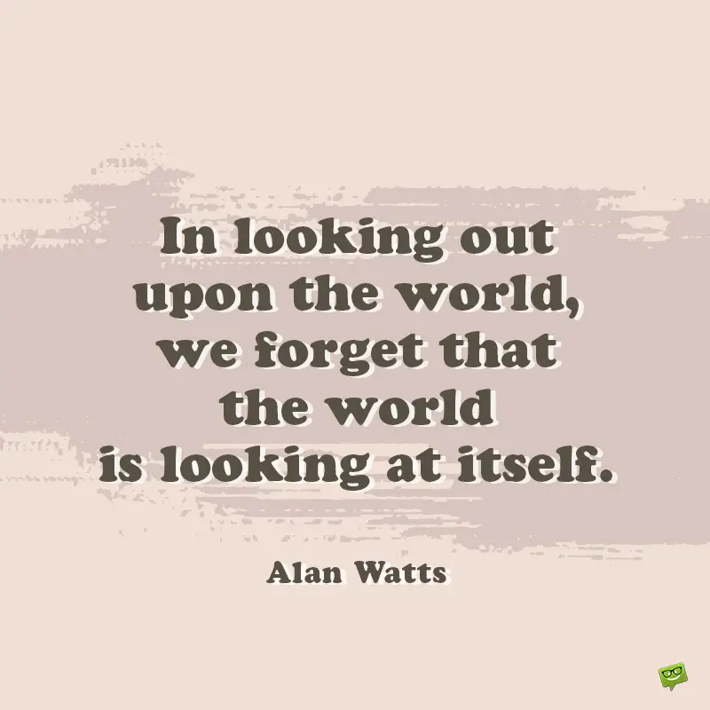 - In looking out upon the world, we forget that the world is looking at itself. Alan Watts