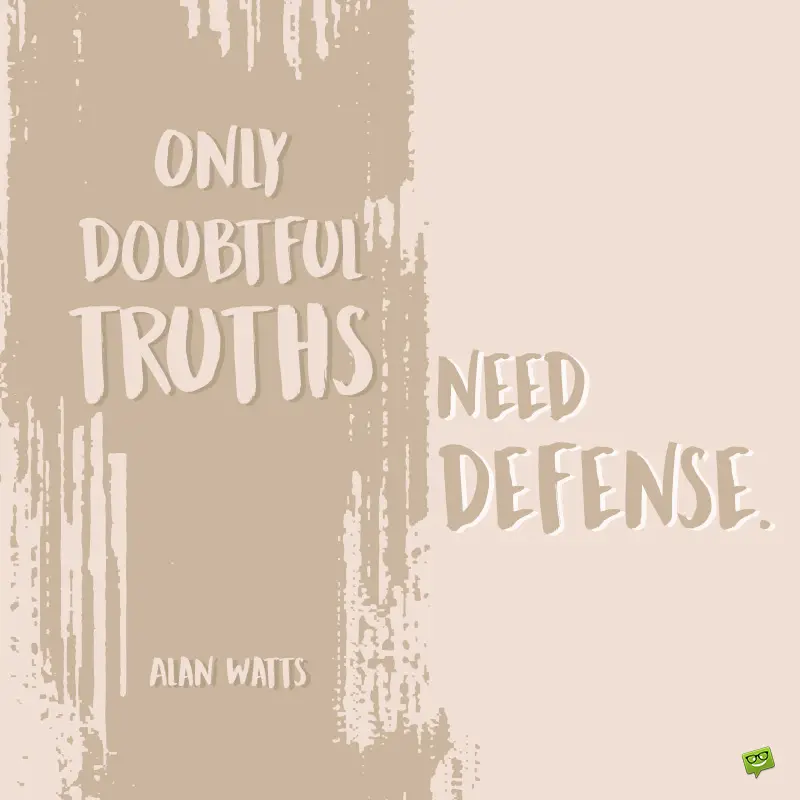 - Only doubtful truths need defense. Alan Watts