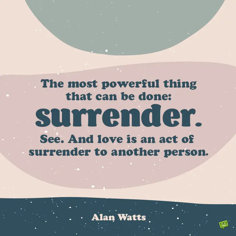 - The most powerful thing that can be done: surrender. See. And love is an act of surrender to another person. Alan Watts