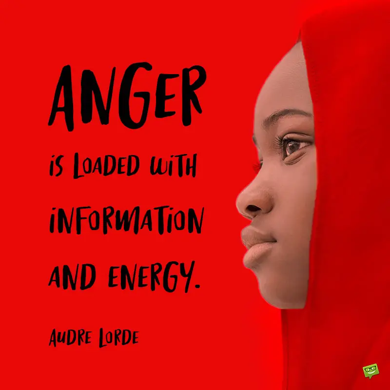 - What you hear in my voice is fury, not suffering. Anger, not moral authority. Audre Lorde