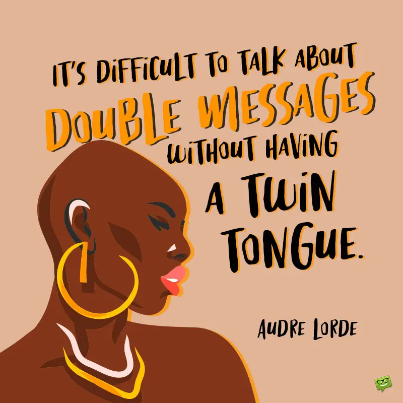 - It’s difficult to talk about double messages without having a twin tongue. Audre Lorde
