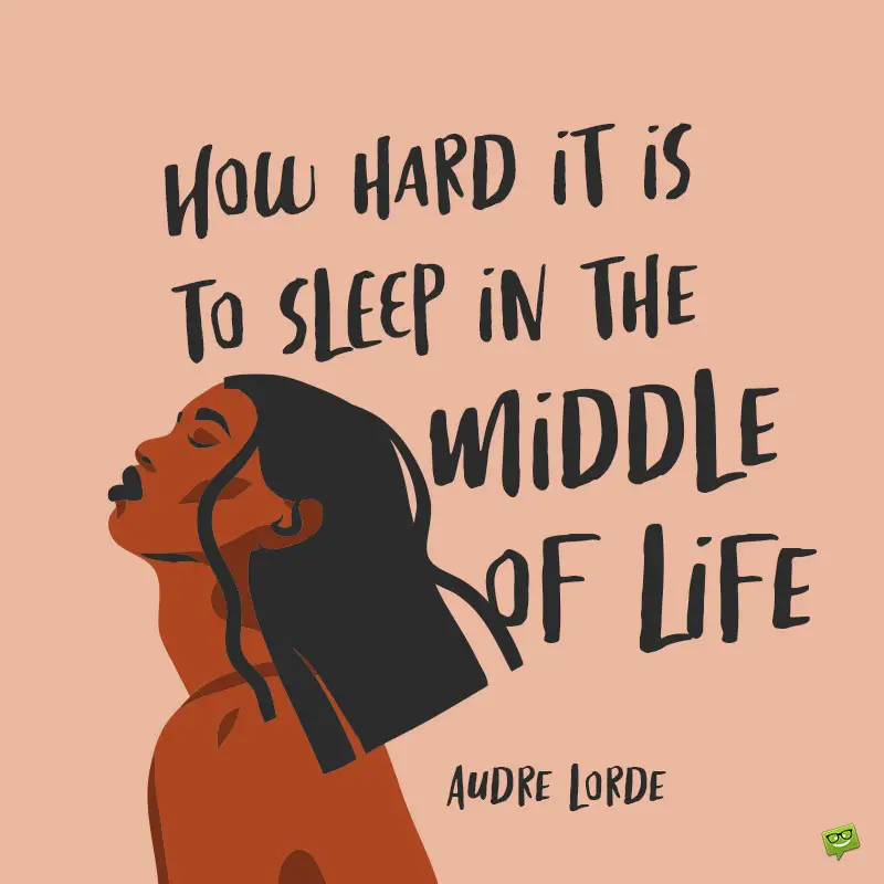 - How hard it is to sleep in the middle of life. Audre Lorde