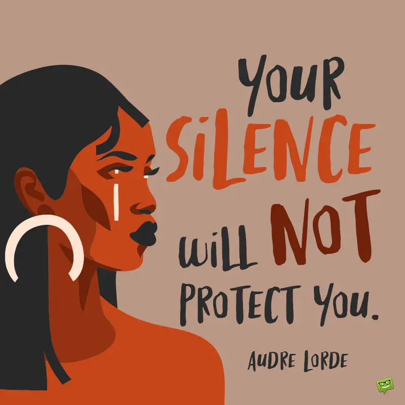 - I write for these women who do not speak, for those who do not have a voice because they were so terrified, because we are taught to respect fear more than ourselves. We’ve been taught that silence will save us, but it won’t. Audre Lorde