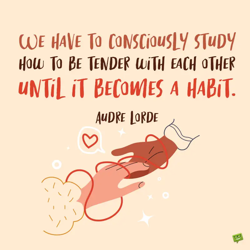 - We have to consciously study how to be tender with each other until it becomes a habit. Audre Lorde