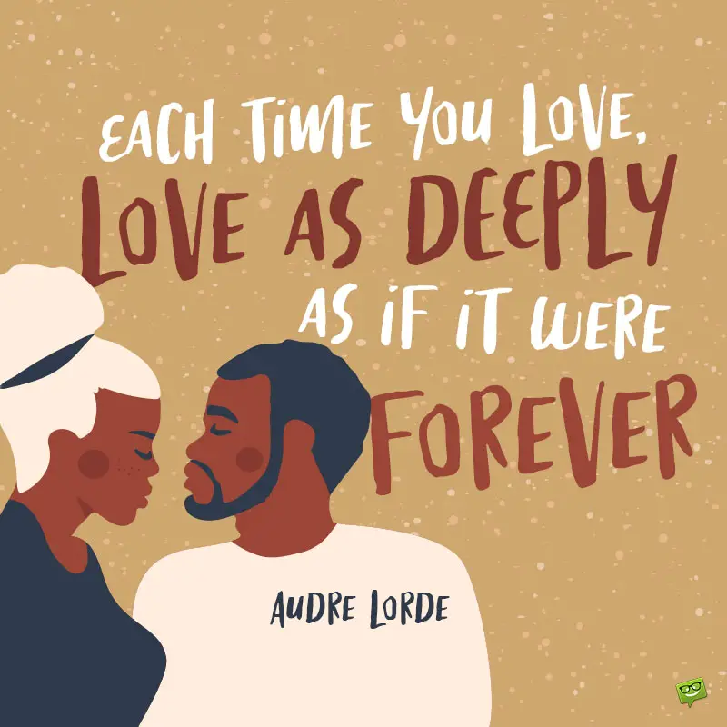 - Each time you love, love as deeply as if it were forever. Audre Lorde