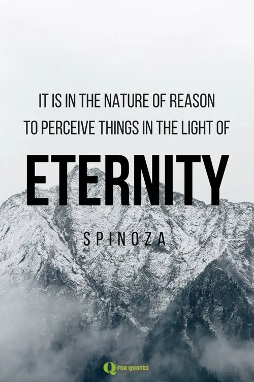 - In so far as the mind sees things in their eternal aspect, it participates in eternity. Baruch Spinoza