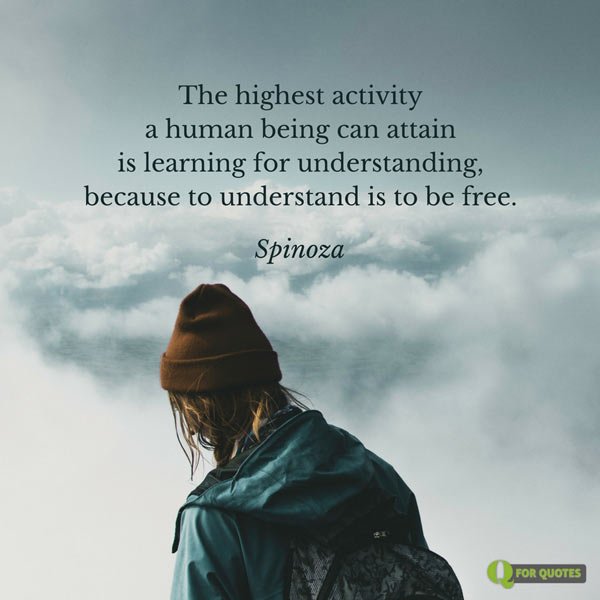 - The highest activity a human being can attain is learning for understanding, because to understand is to be free. Baruch Spinoza