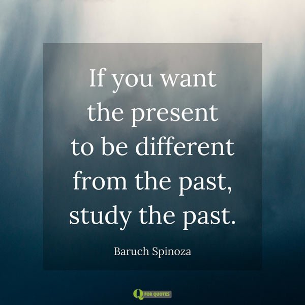 - If you want the present to be different from the past, study the past. Baruch Spinoza