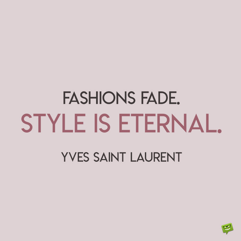 - Fashions fade. Style is eternal. Yves Saint Laurent