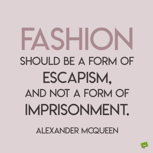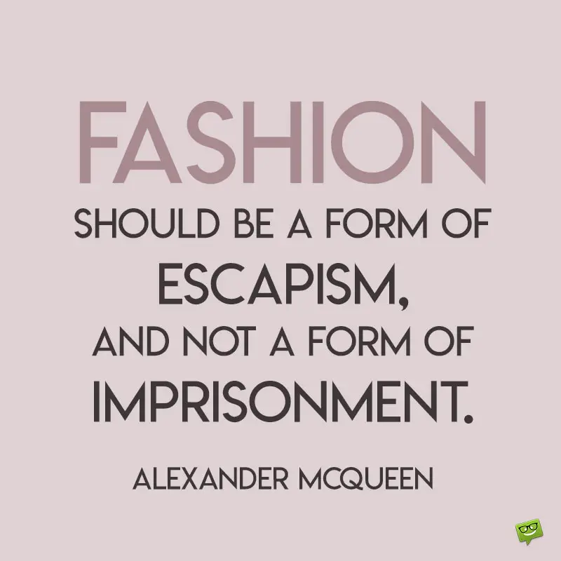 - Fashion should be a form of escapism, and not a form of imprisonment. Alexander McQueen
