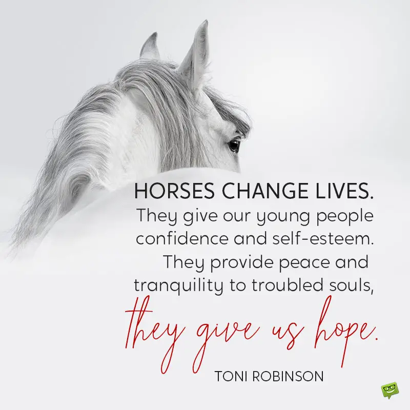 - Horses change lives. They give our young people confidence and self-esteem. They provide peace and tranquility to troubled souls, they give us hope. Toni Robinson