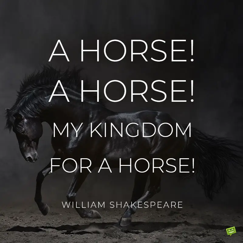 - ‘A horse! A horse! My kingdom for a horse!’ William Shakespeare