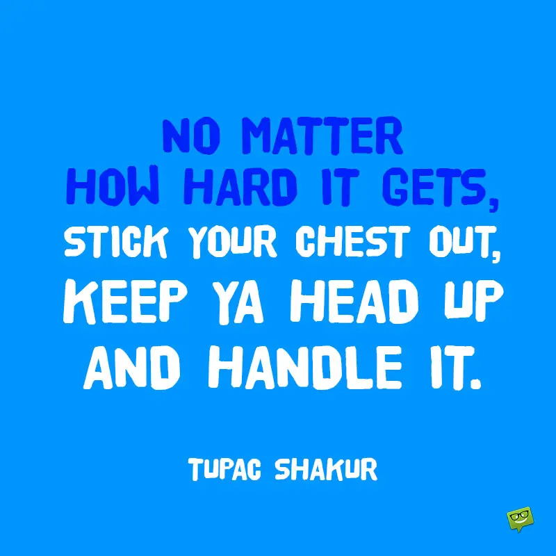 - I know it seems hard sometimes, but remember one thing. Through every dark night, there’s a bright day after that. So no matter how hard it gets, stick your chest out, keep ya head up and handle it. Tupac Shakur