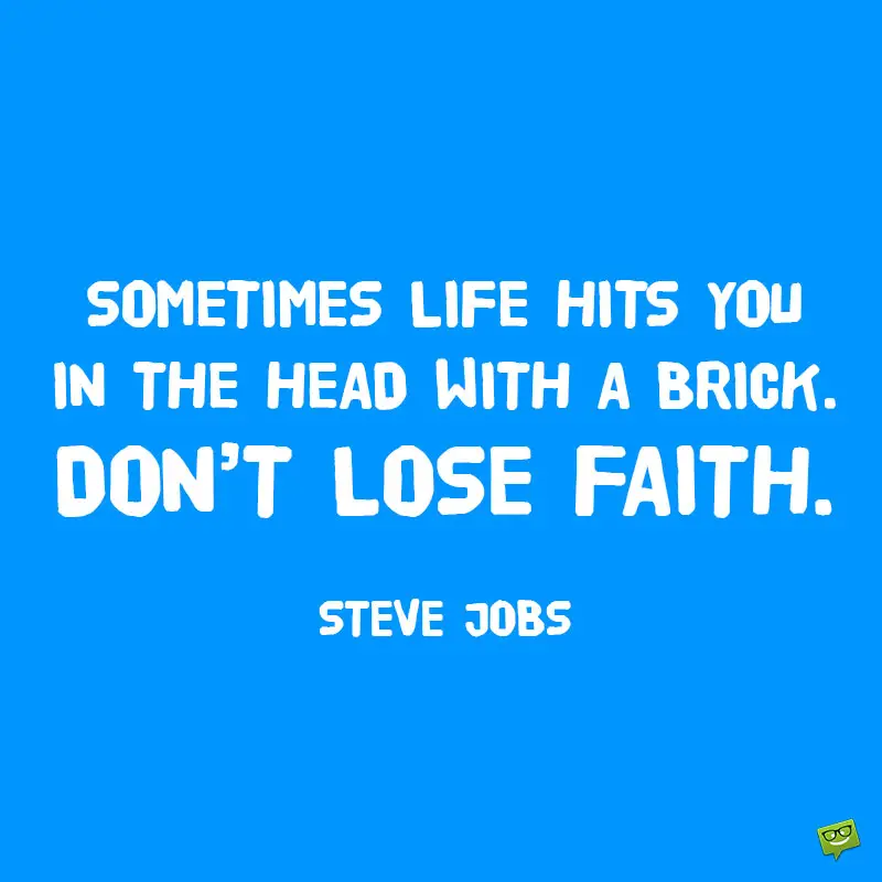- Sometimes life hits you in the head with a brick. Don’t lose faith. Steve Jobs