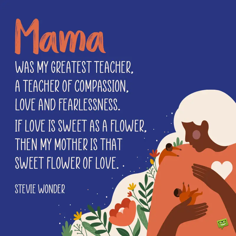 - Mama was my greatest teacher, a teacher of compassion, love and fearlessness. If love is sweet as a flower, then my mother is that sweet flower of love. Stevie Wonder
