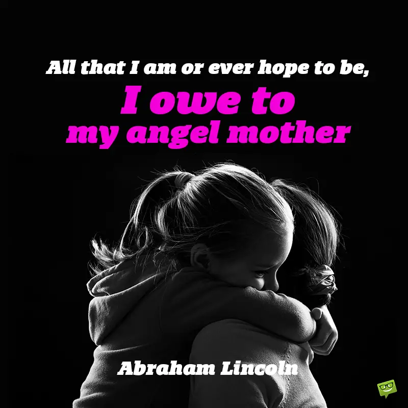 - All that I am, or ever hope to be, I owe to my angel mother. Abraham Lincoln