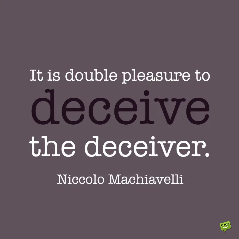 - It is double pleasure to deceive the deceiver. Niccolo Machiavelli