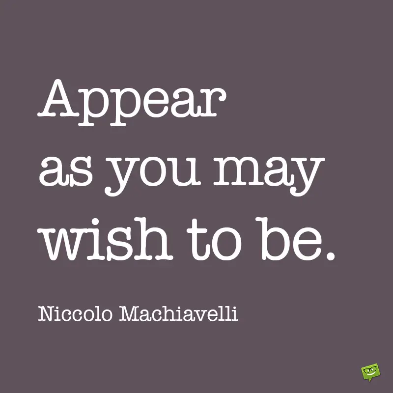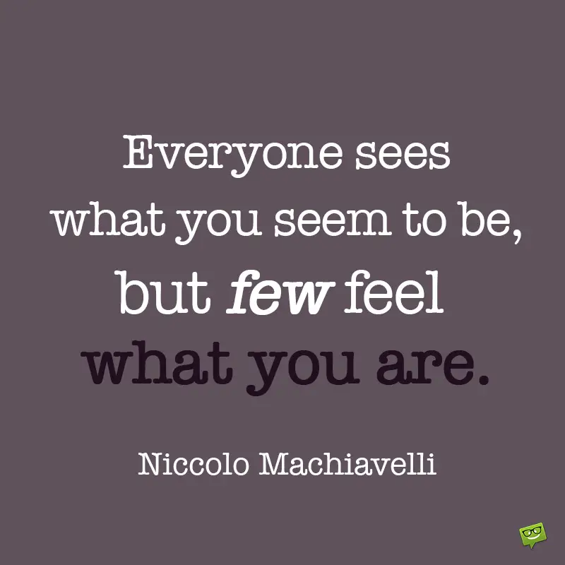 - Everyone sees what you seem to be, but few feel what you are. Niccolo Machiavelli