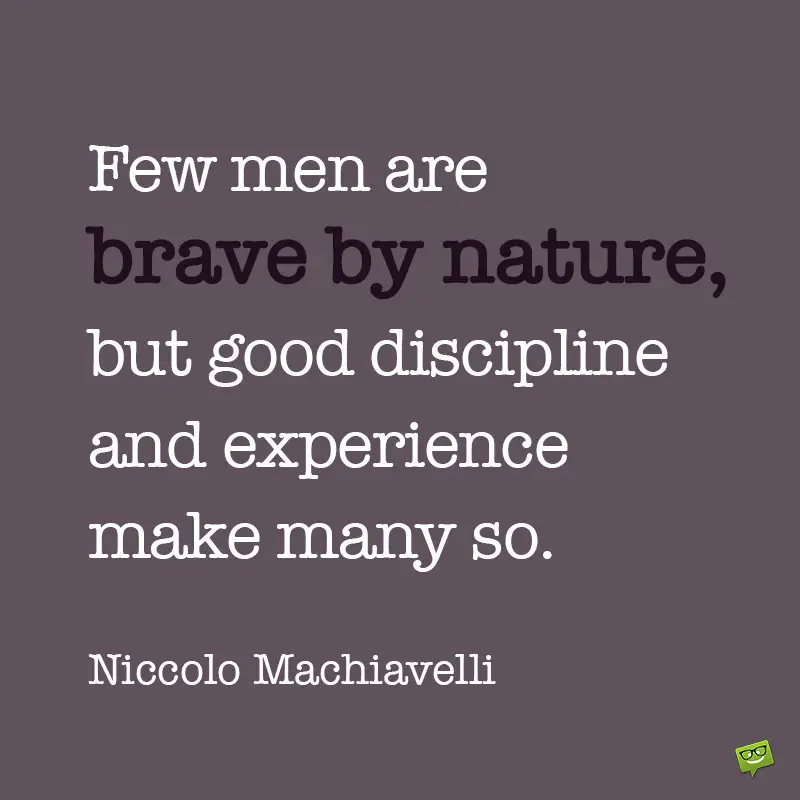 - Few men are brave by nature, but good discipline and experience make many so. Niccolo Machiavelli