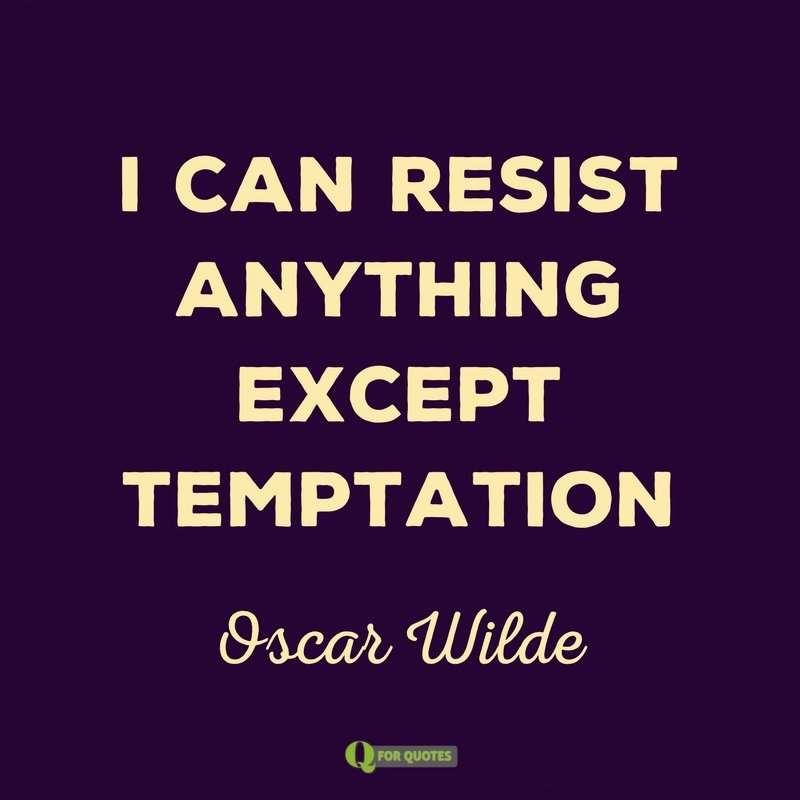 - I can resist anything except temptation. Oscar Wilde