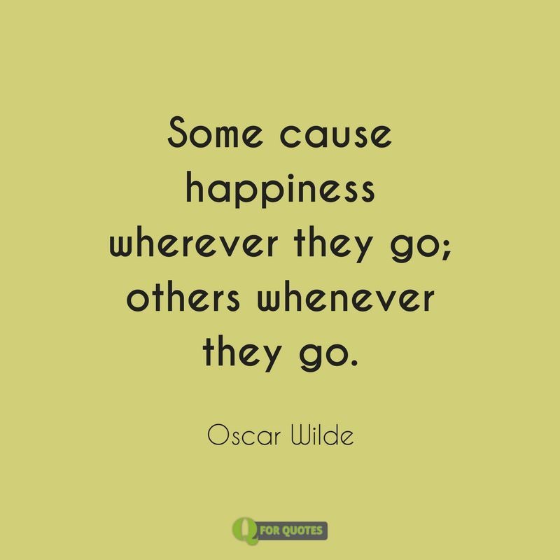 - Some cause happiness wherever they go; others whenever they go. Oscar Wilde