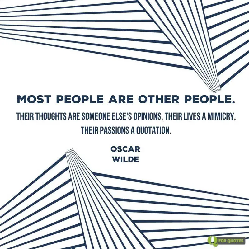 - Most people are other people. Their thoughts are someone else’s opinions, their lives a mimicry, their passions a quotation. Oscar Wilde