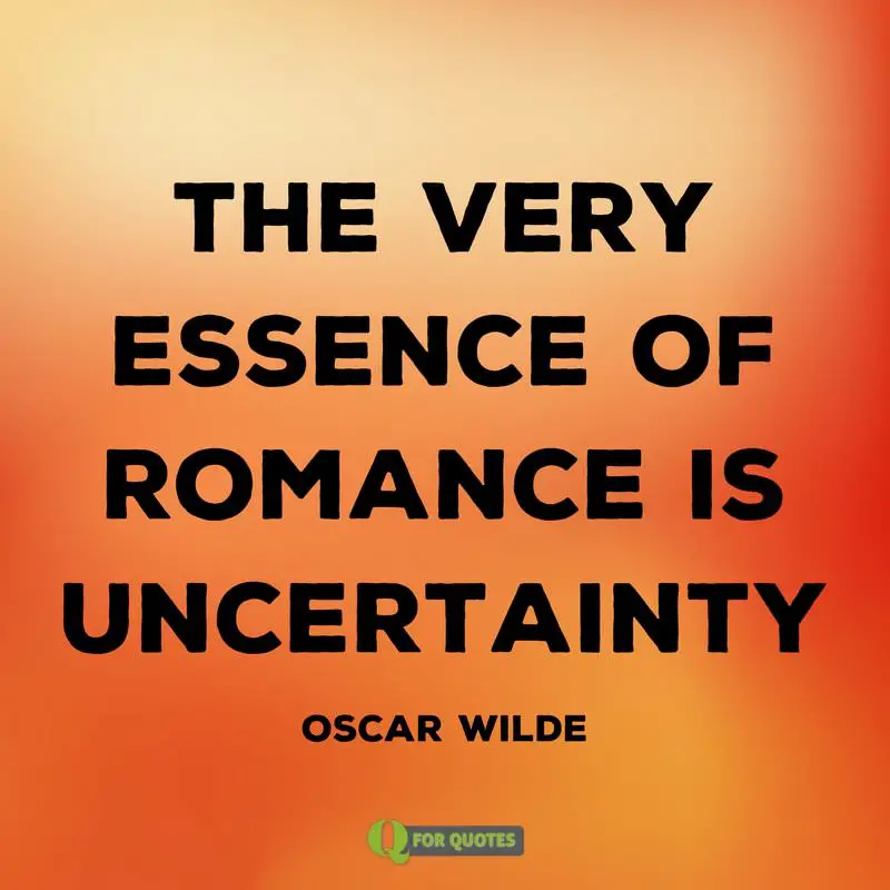 - The very essence of romance is uncertainty. Oscar Wilde