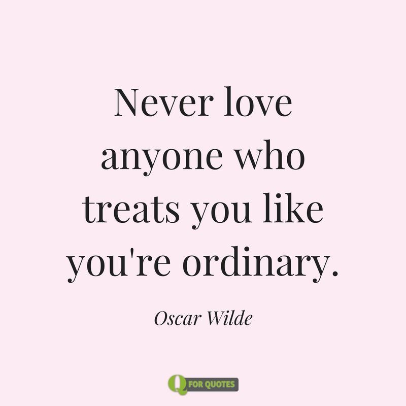 - Never love anyone who treats you like you’re ordinary. Oscar Wilde