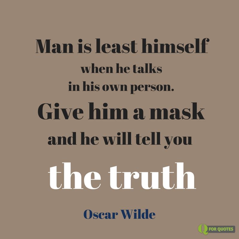 - Man is least himself when he talks in his own person. Give him a mask, and he will tell you the truth. Oscar Wilde