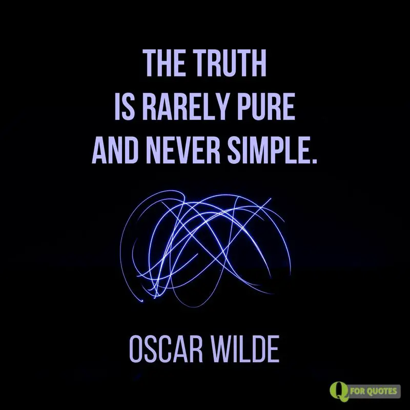 - The truth is rarely pure and never simple. Oscar Wilde