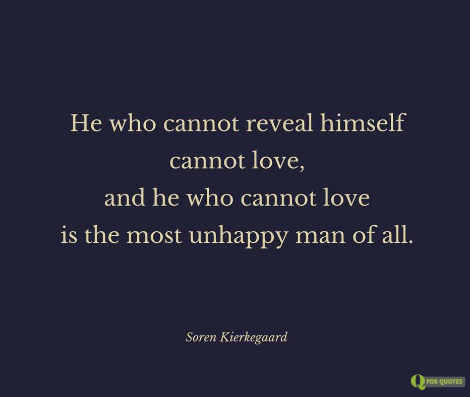that sustains thought and holds the world together. Søren Kierkegaard - What is a poet? An unhappy person who conceals profound anguish in his heart but whose lips are so formed that as sighs and cries pass over them they sound like beautiful music.