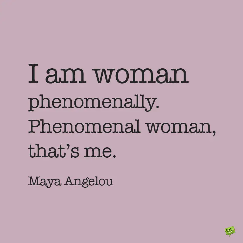 - I am woman phenomenally. Phenomenal woman, that’s me. Maya Angelou
