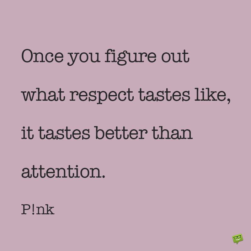 - Once you figure out what respect tastes like, it tastes better than attention. P!nk