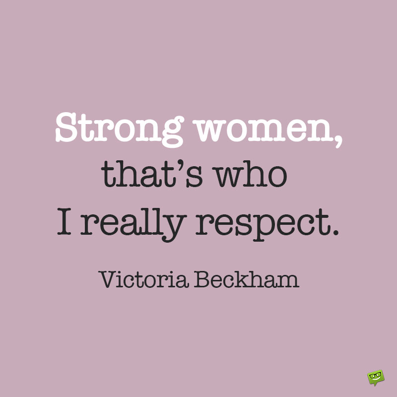 - Strong women, that’s who I really respect. Victoria Beckham