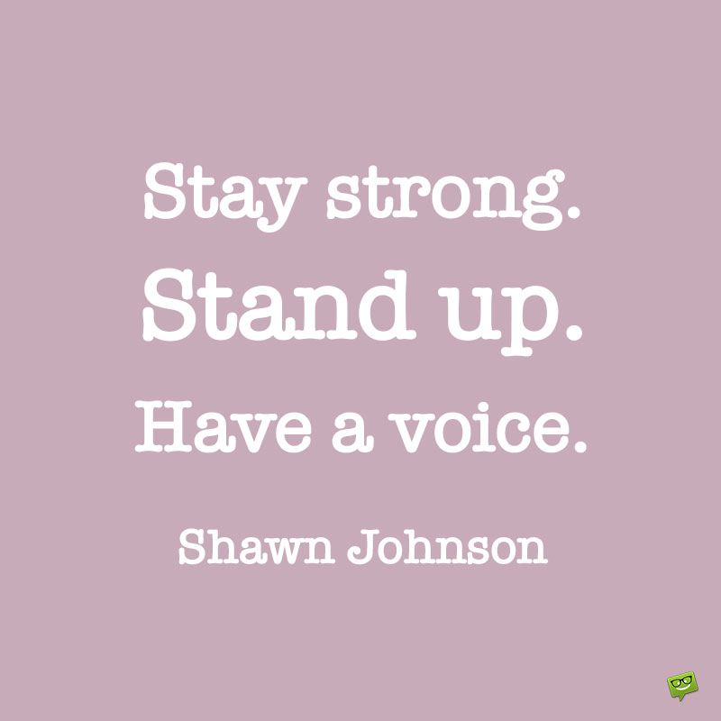 - Stay strong. Stand up. Have a voice. Shawn Johnson