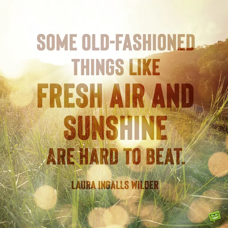 - Some old-fashioned things like fresh air and sunshine are hard to beat.