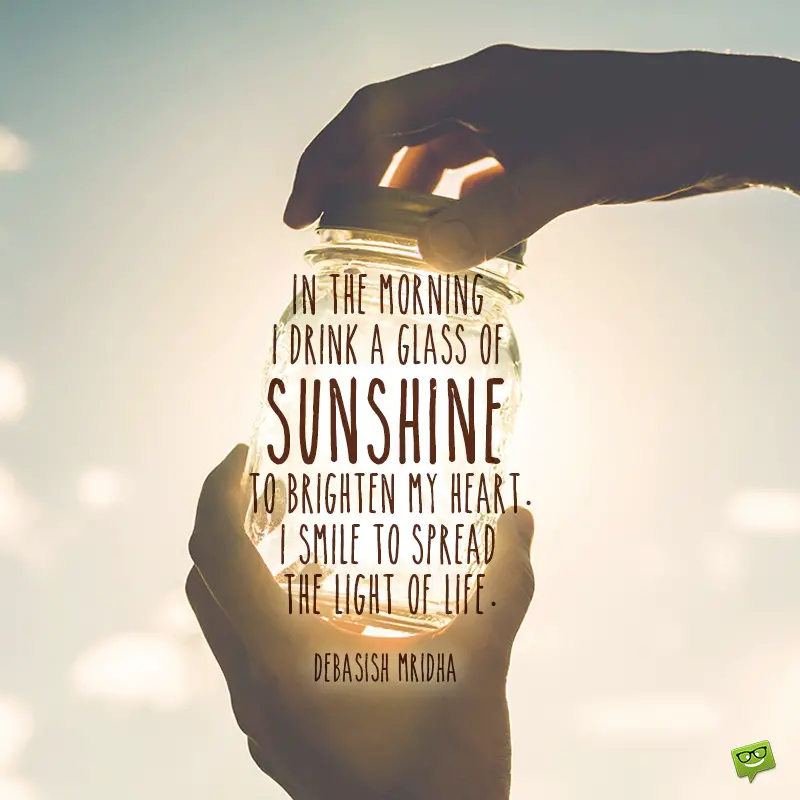 - In the morning I drink a glass of sunshine to brighten my heart. I smile to spread the light of life.