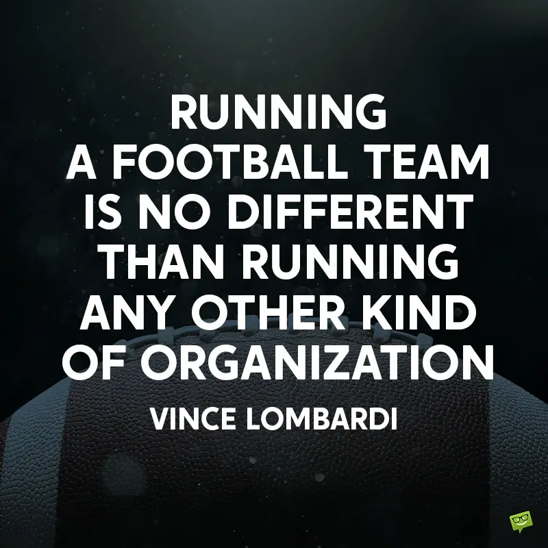 - Running a football team is no different than running any other kind of organization. Vince Lombardi