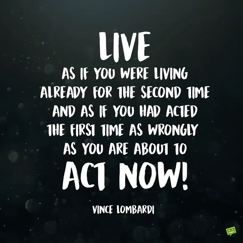- Live as if you were living already for the second time and as if you had acted the first time as wrongly as you are about to act now! Vince Lombardi