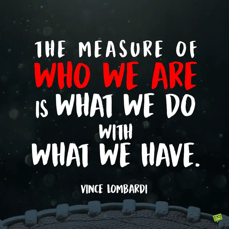 - The measure of who we are is what we do with what we have. Vince Lombardi