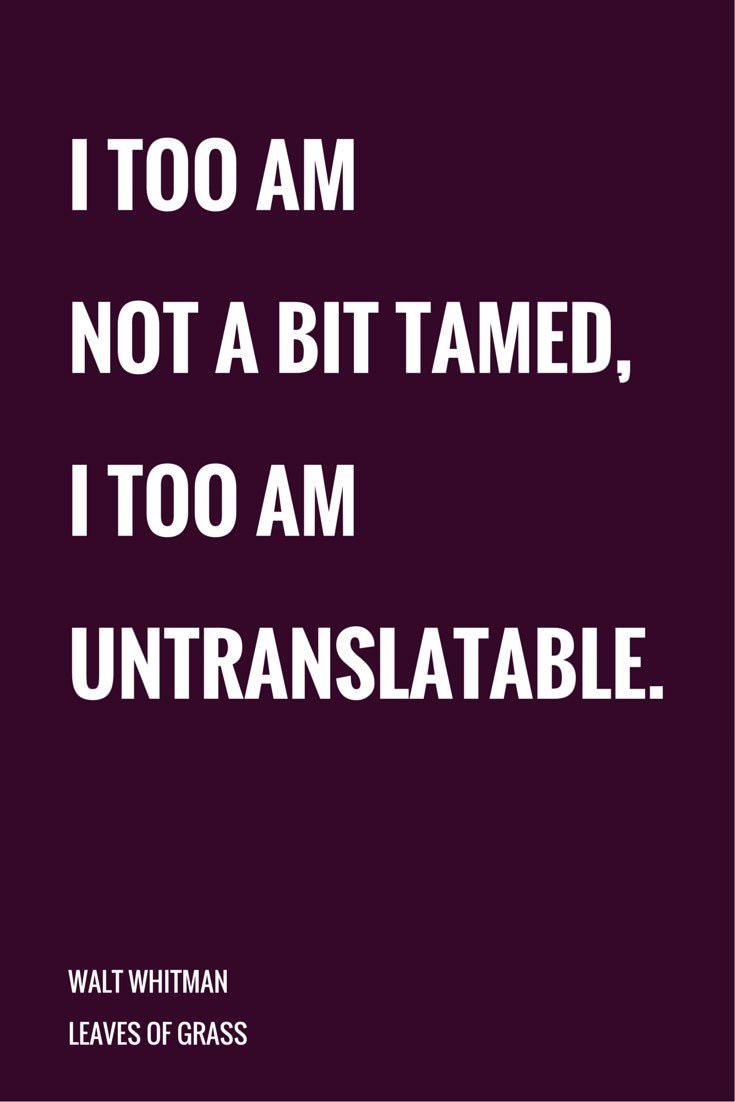 *This is what you shall do; Love the earth and sun and the animals, despise riches, give alms to every one that asks, stand up for the stupid and crazy, devote your income and labor to others, hate tyrants, argue not concerning God, have patience and indulgence toward the people, take off your hat to nothing known or unknown or to any man or number of men, go freely with powerful uneducated persons and with the young and with the mothers of families, read these leaves in the open air every season of every year of your life, re-examine all you have been told at school or church or in any book, dismiss whatever insults your own soul, and your very flesh shall be a great poem and have the richest fluency not only in its words but in the silent lines of its lips and face and between the lashes of your eyes and in every motion and joint of your body. Walt Whitman