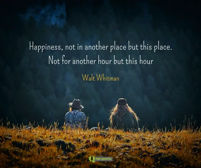 Walt Whitman, Leaves of Grass - Happiness, not in another place but this place…not for another hour, but this hour. Walt Whitman