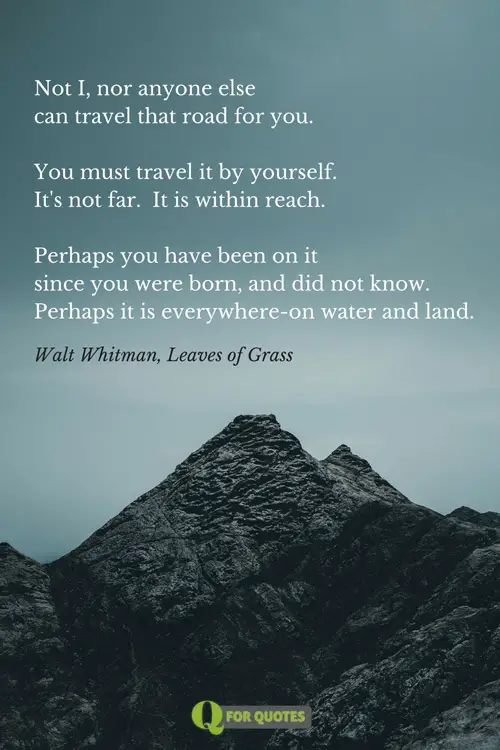 Walt Whitman - Not I, nor anyone else can travel that road for you.
