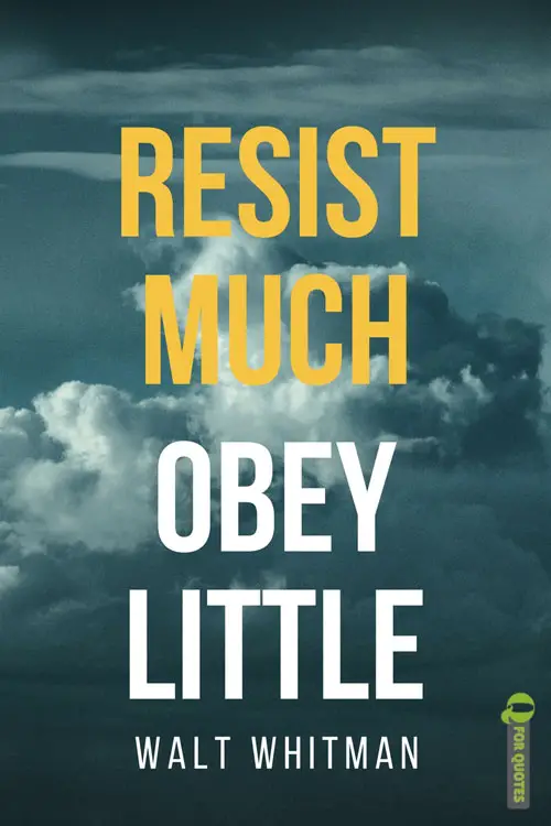 - Resist much, obey little. Walt Whitman, Leaves of Grass