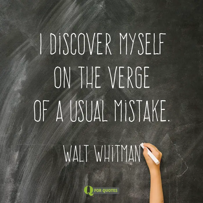 - I discover myself on the verge of a usual mistake. Walt Whitman, Song of Myself