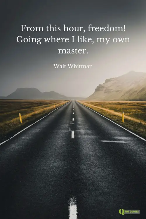 - Afoot and lighthearted I take to the open road, healthy, free, the world before me. Walt Whitman