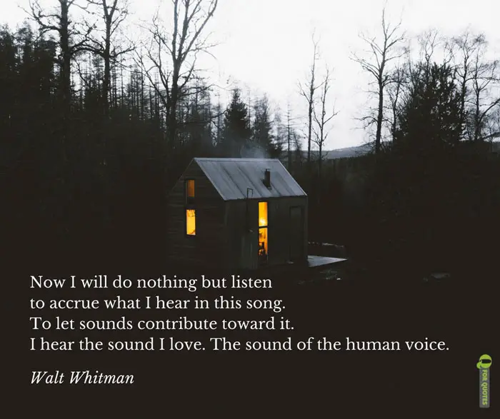 - I think I will do nothing for a long time but listen, and accrue what I hear into myself…and let sound contribute toward me. Walt Whitman, Leaves of Grass
