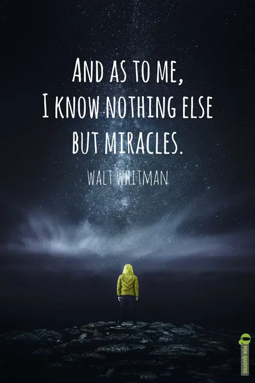 - And as to me, I know nothing else but miracles. Walt Whitman, Leaves of Grass