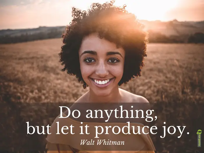 - Do anything, but let it produce joy. Walt Whitman, Leaves of Grass