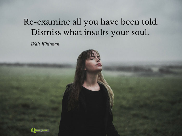 Walt Whitman, Leaves of Grass - Re-examine all you have been told. Dismiss what insults your soul. Walt Whitman